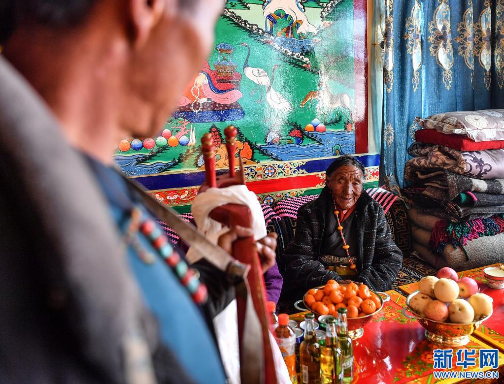 家人給達(dá)確老人唱歌(1月14日攝)。新華社記者 普布扎西 攝