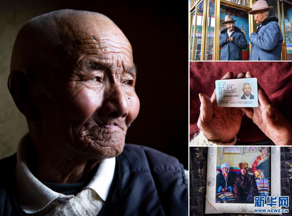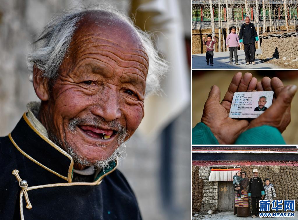 這是一張拼版照片,左圖為索朗楊佩的肖像;右上圖為索朗楊佩(左)和孩子一起玩耍;右中圖為索朗楊佩的身份證;右下圖為索朗楊佩(右)和老伴兒卓嘎在米林縣單嘎努覺村的家中留影(照片均為3月30日新華社記者孫瑞博攝)。新華社發(fā)
