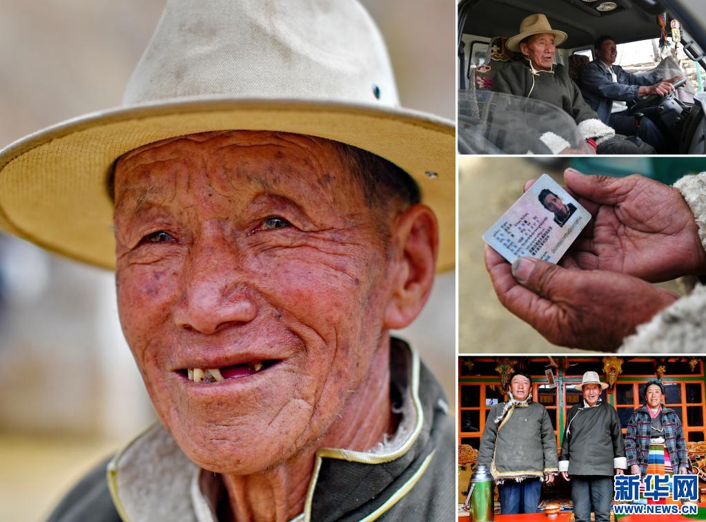 這是一張拼版照片,左圖為多扎木的肖像(3月20日新華社記者張汝鋒攝);右上圖為多扎木和兒子準(zhǔn)備坐車外出(3月20日新華社記者孫瑞博攝);右中圖為多扎木老人的身份證(3月20日新華社記者孫瑞博攝);右下圖為多扎木(中)和兒子、兒媳在家中(3月20日新華社記者張汝鋒攝)。新華社發(fā)