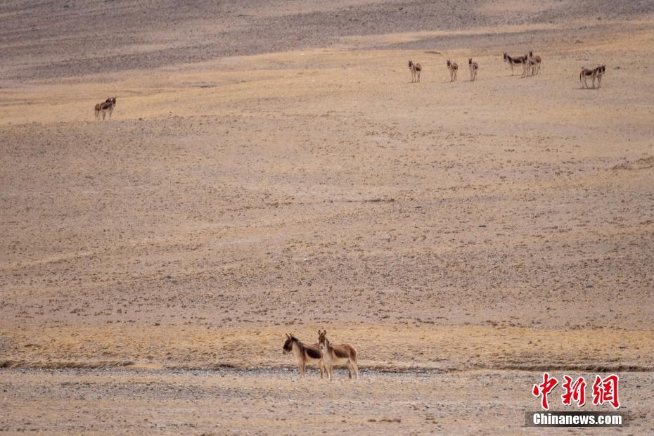 5月2日,一群藏野驢在西藏雙湖縣羌塘草原覓食,如今藏野驢在當?shù)仉S處可見。