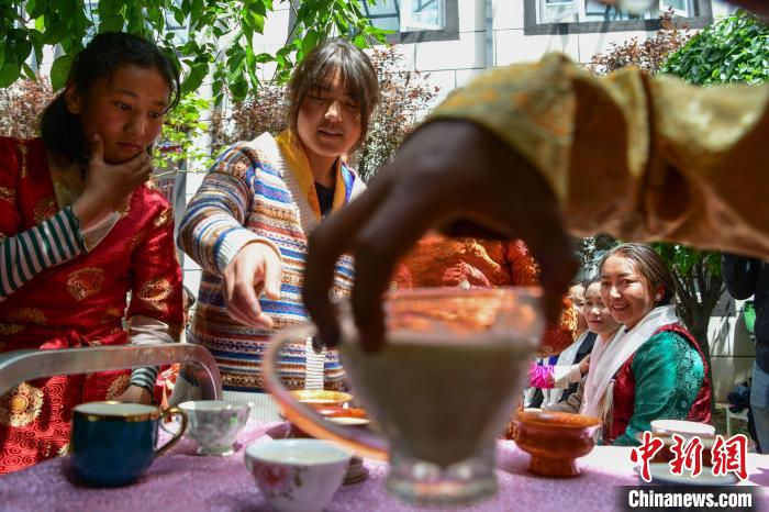圖為兒童福利院的孩子們正在認領(lǐng)自己的“媽媽”茶杯。貢嘎來松 攝