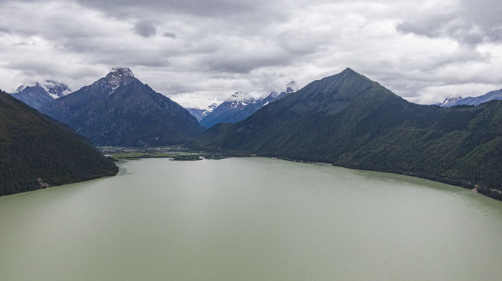 這是巴松措湖景色(2020年7月31日攝,無人機(jī)照片)。 新華社記者 孫非 攝