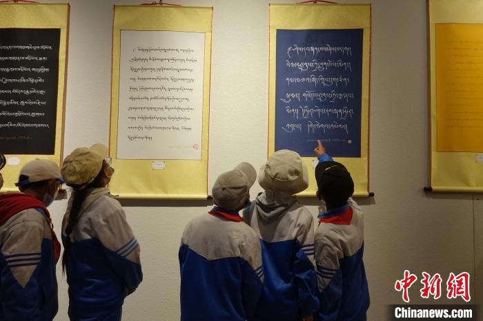 5月18日,觀眾參觀山南市博物館“埃赤派”藏文書(shū)法展。冉文娟 攝