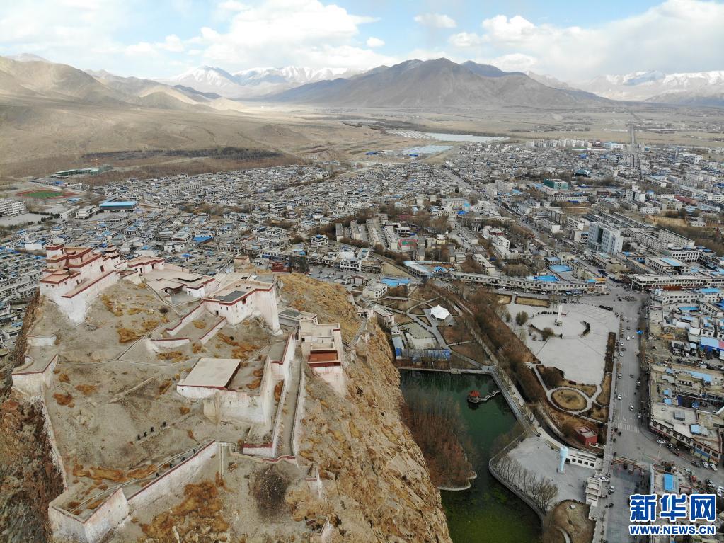 這是3月23日拍攝的江孜宗山古堡和江孜縣城(無(wú)人機(jī)照片)。新華社記者 孫瑞博 攝