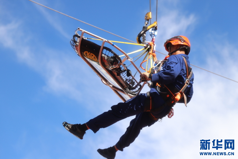 隊員正在進(jìn)行繩索救援訓(xùn)練(6月6日攝)。(新華網(wǎng)發(fā) 劉論剛攝)