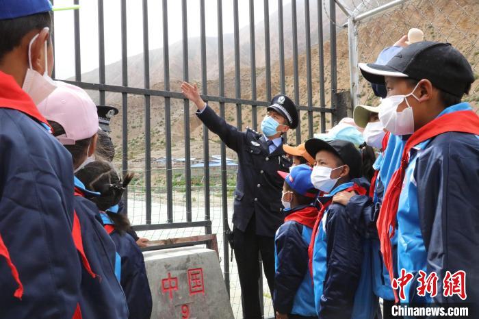 “同學們,現(xiàn)在你們看到的就是屹立在中尼邊境的9、10號界樁,界樁代表著國家的形象,我們要像愛護自己的眼睛一樣愛護、守護它?!逼仗m出入境邊防檢查站民警格桑倫珠正在為學生們講述中尼邊境界碑的故事。