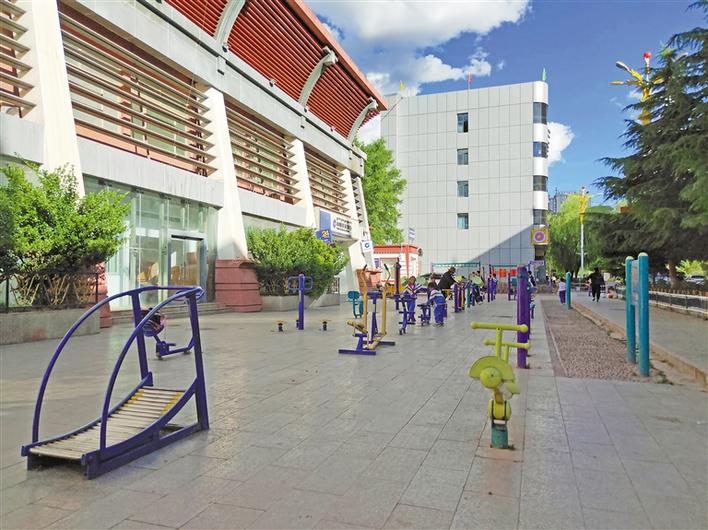 圖為昌都市全民健身公益活動中心前供市民運(yùn)動的健身器材。 記者 桑鄧旺姆 攝