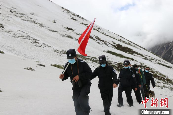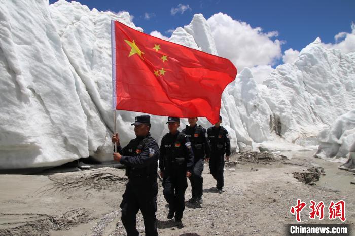 圖為普瑪江塘邊境派出所移民管理警察在邊境一線崗布冰川巡邏踏查。山南邊境管理支隊(duì)供圖