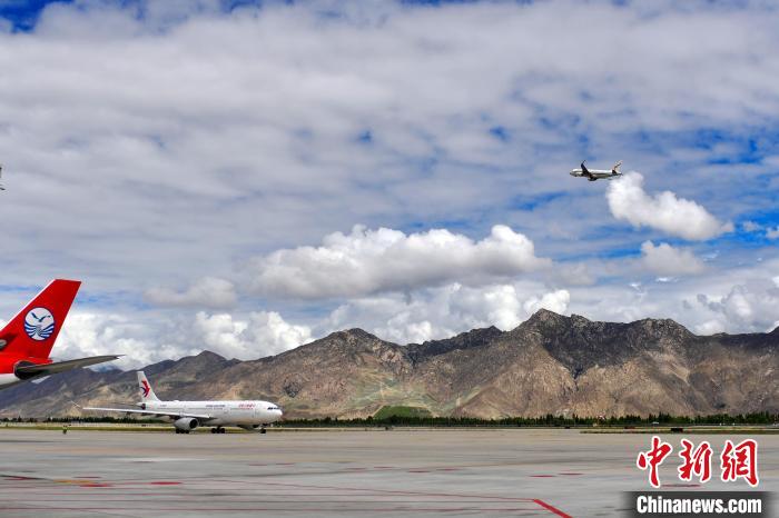 圖為拉薩貢嘎國(guó)際機(jī)場(chǎng)航班起降。 周航 攝