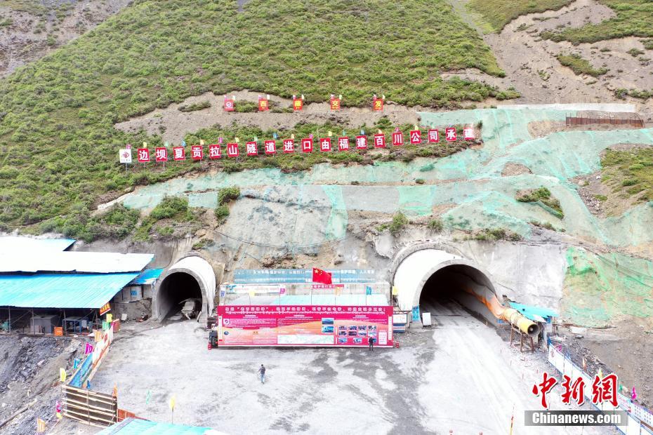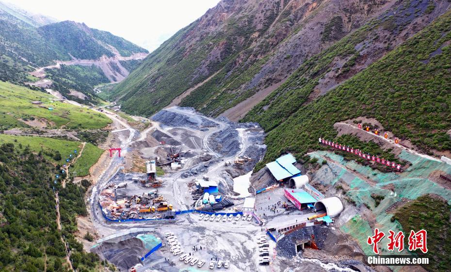 7月24日,航拍正在建設中的夏貢拉山隧道進口。穿越昌都市洛隆、邊壩兩縣和那曲市嘉黎縣的349國道控制性工程——夏貢拉山隧道項目建設正穩(wěn)步推進。(無人機照片) 中新社記者 劉忠俊 攝
