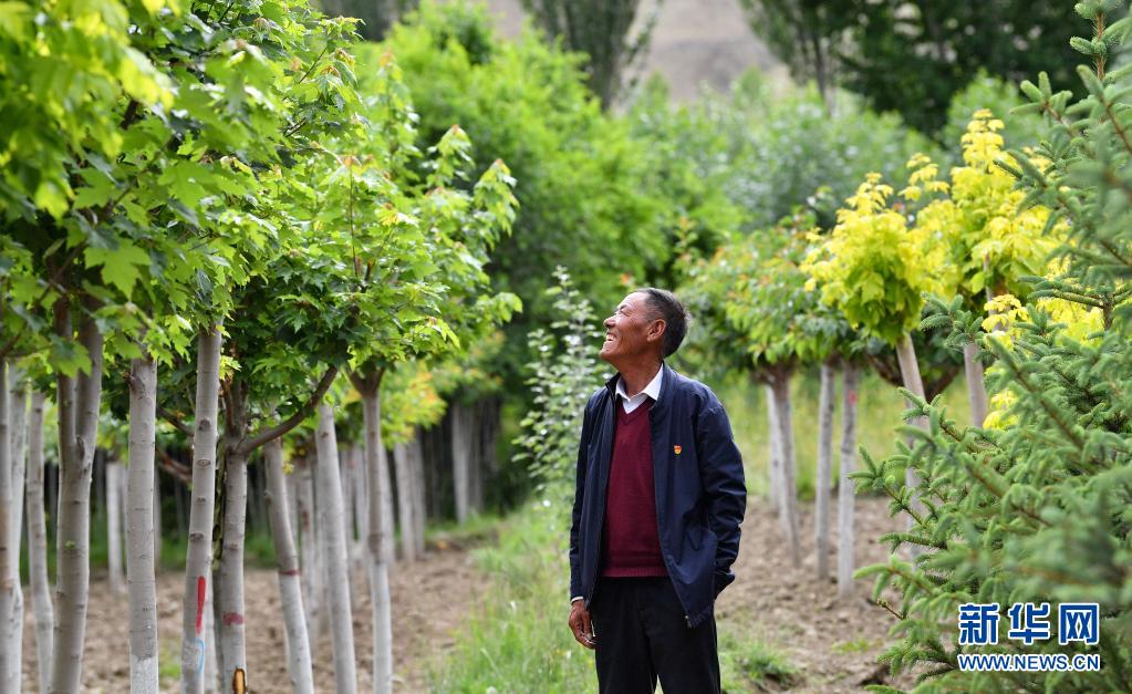 山南市扎囊縣某苗圃基地負責人邊久在查看基地內栽種的樹苗(7月20日攝)。新華社記者 晉美多吉 攝