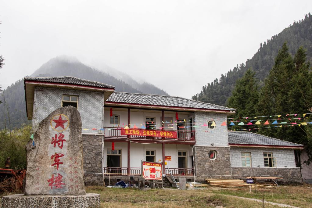 在易貢茶場,一座二層石木結(jié)構的小樓前立著一塊石碑,上面用紅漆書寫著“將軍樓”3個大字。據(jù)介紹,這是當年十八軍軍長張國華將軍在藏期間的辦公起居地之一?!安筷犃粝铝?0幢樓房和11幢平房,這是茶場最珍貴的紅色遺跡?!辈懦陶f。