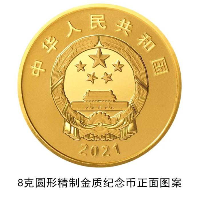 該套金銀紀念幣正面圖案均為中華人民共和國國徽,并刊國名、年號。
