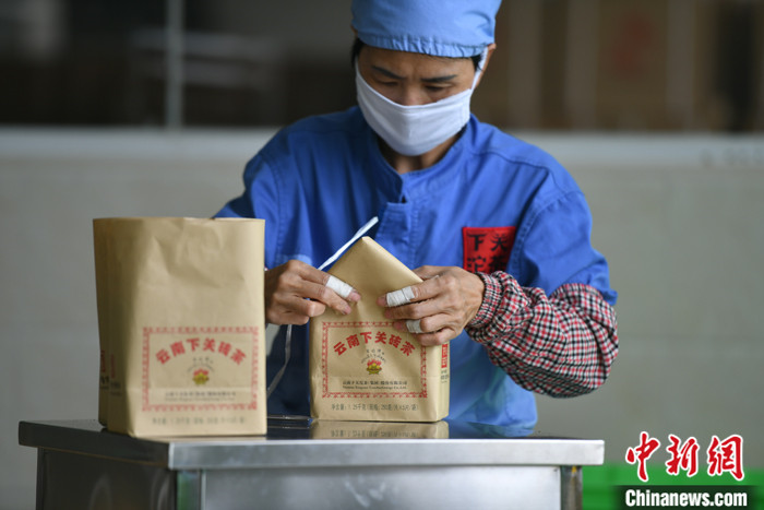 圖為8月12日,云南大理,包裝好的緊茶。中新社記者 劉冉陽 攝