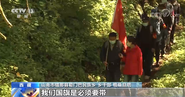 西藏山南市錯(cuò)那縣勒門巴民族鄉(xiāng)鄉(xiāng)干部 格桑旦增:必須帶的是國旗,在我們的國土上要插上我們的國旗,還有要帶刀子,路不好走,雜草,還有蛇,還有狗熊、野豬都有。