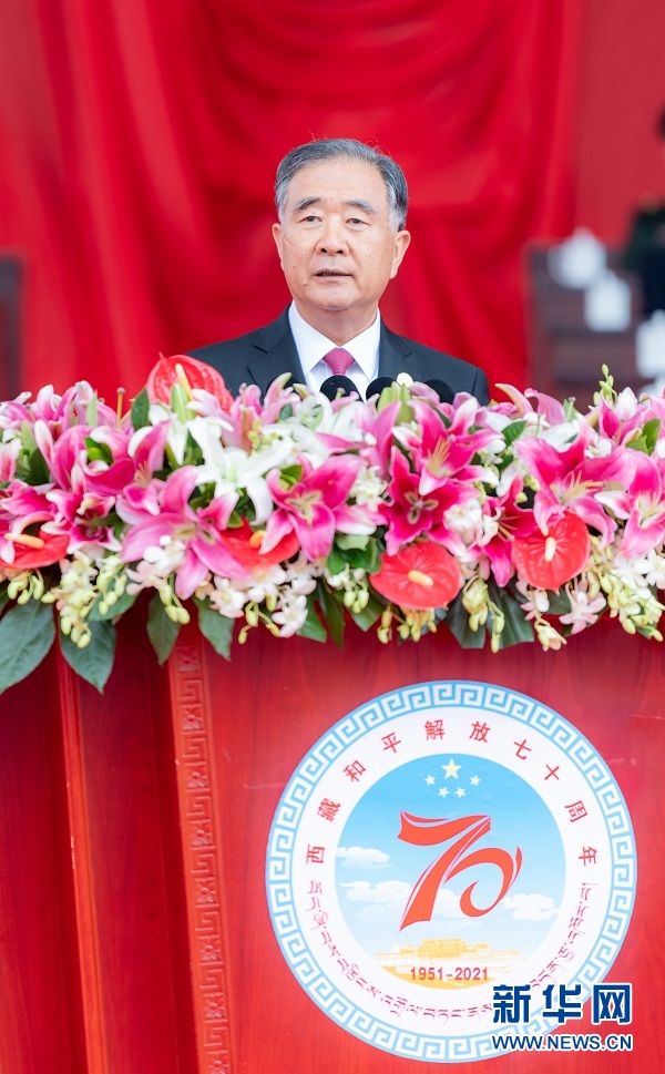 8月19日,慶祝西藏和平解放70周年大會在拉薩隆重舉行。中共中央政治局常委、全國政協(xié)主席、中央代表團團長汪洋出席慶祝大會并講話。新華社記者 翟健嵐 攝