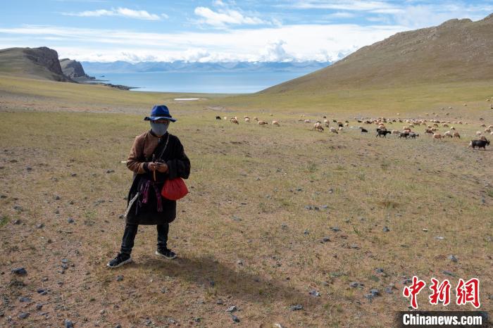 37歲的土桑是西藏那曲班戈縣青龍鄉(xiāng)嘎雄村的牧民,8月,他和同村另兩位牧民負(fù)責(zé)照看村里的羊群,在美麗的納木錯(cuò)北岸湖邊放牧。