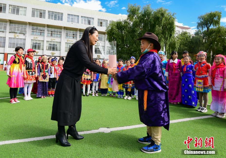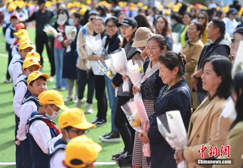 9月10日是第37個(gè)教師節(jié),西藏拉薩市第一小學(xué)舉行了以“譜團(tuán)結(jié)新篇 育桃李芬芳 感教師恩情”為主題的慶?;顒?dòng)。學(xué)生以敬禮、獻(xiàn)花、擁抱等方式,表達(dá)對老師的感恩之情。中新社記者 貢嘎來松 攝