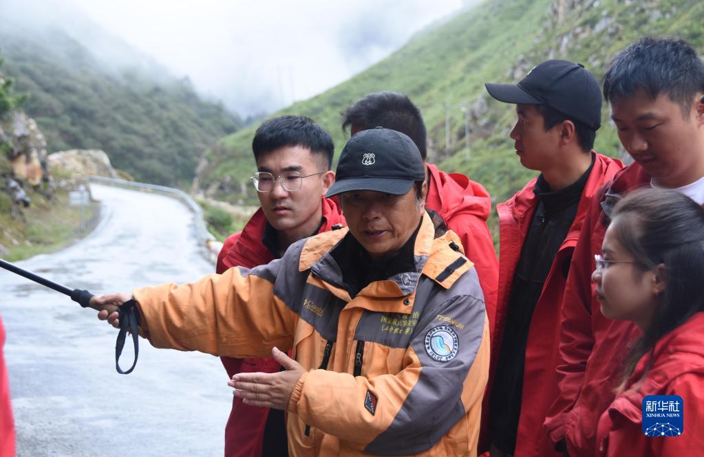 9月7日,在西藏日喀則市區(qū)域內(nèi)的喜馬拉雅山脈,中科院地理科學與資源研究所客座教授李渝生(前左)和年輕的科考隊員分析問題。新華社記者 杜剛 攝
