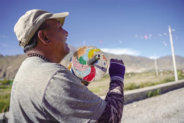 每年秋日,人們聚集在拉薩河畔,享受斗風(fēng)箏帶來(lái)的各種樂(lè)趣。除了放風(fēng)箏外,撿風(fēng)箏也是很開(kāi)心的事,被割斷線的風(fēng)箏,誰(shuí)撿到就歸誰(shuí)。因此,一些孩子看到天上飄落下來(lái)的風(fēng)箏便趕緊跑過(guò)去撿,有時(shí)大人也會(huì)參與其中,好不熱鬧,直至傍晚時(shí)分人們才依依不舍地漸漸散去。
