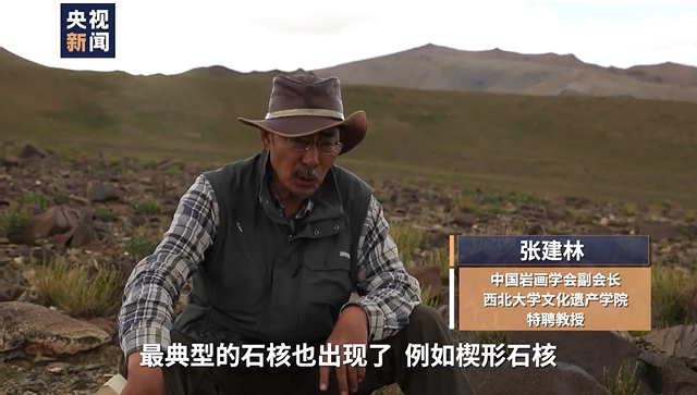 中國巖畫學會副會長、西北大學文化遺產(chǎn)學院特聘教授 張建林:最典型的石核也出現(xiàn)了,例如楔形石核。年代不好判斷,我們對現(xiàn)在藏北地區(qū)的細石器,現(xiàn)在還沒有這個年代上的框架,我們只是分布區(qū)域上,細石器地點發(fā)現(xiàn)得非常多,從那曲一直到阿里。