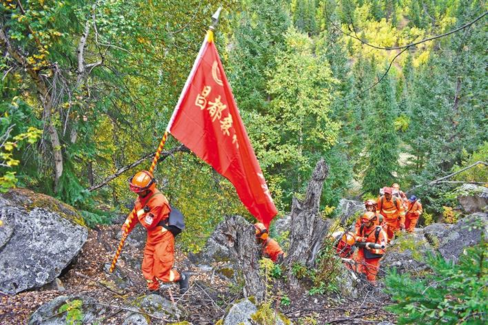 昌都市森林消防支隊在林區(qū)巡護。記者 楊小娟 攝