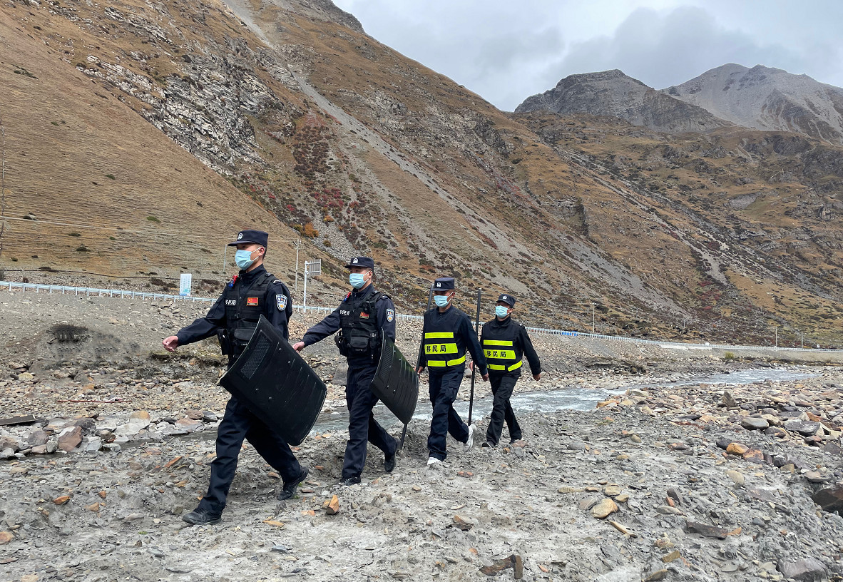 圖為曲桑邊境檢查站民警開展防避關繞卡巡邏工作 鐘鑫 攝