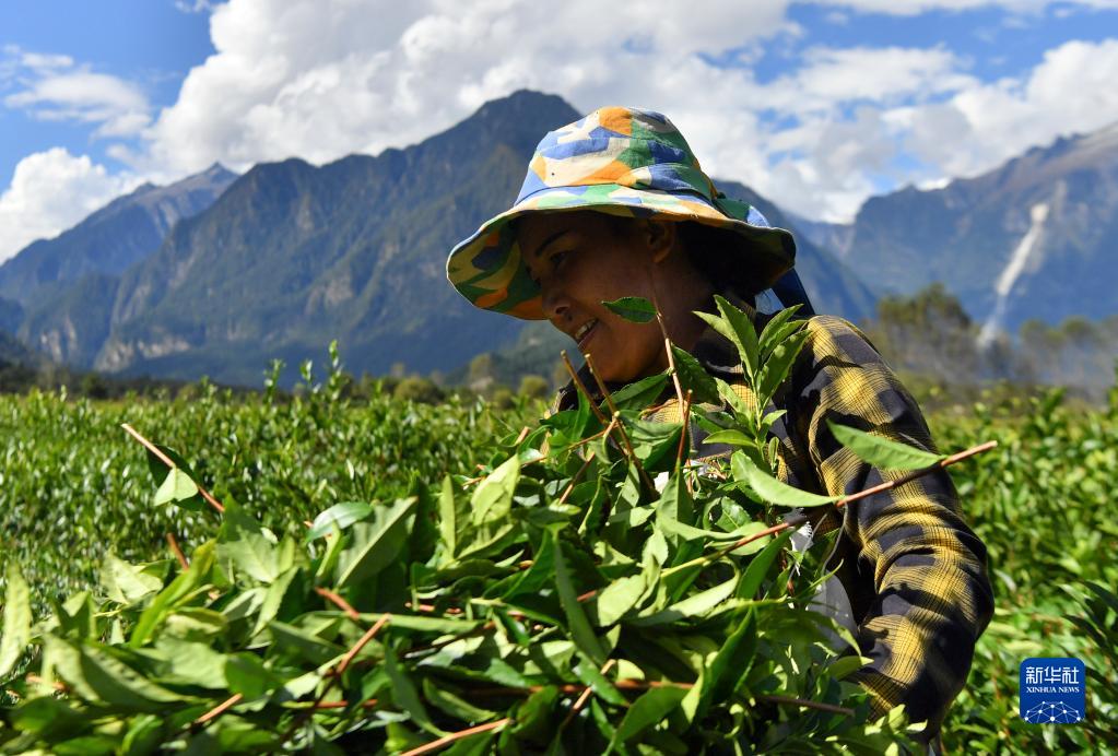 近期,西藏林芝市易貢茶場進(jìn)入秋茶采摘季,茶園里一片繁忙景象。
