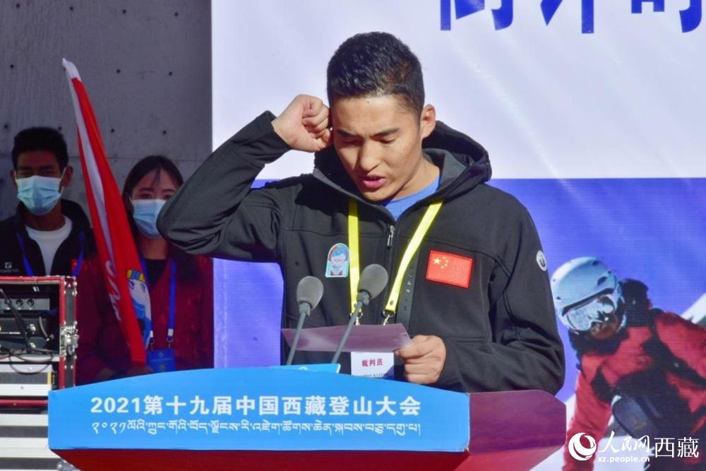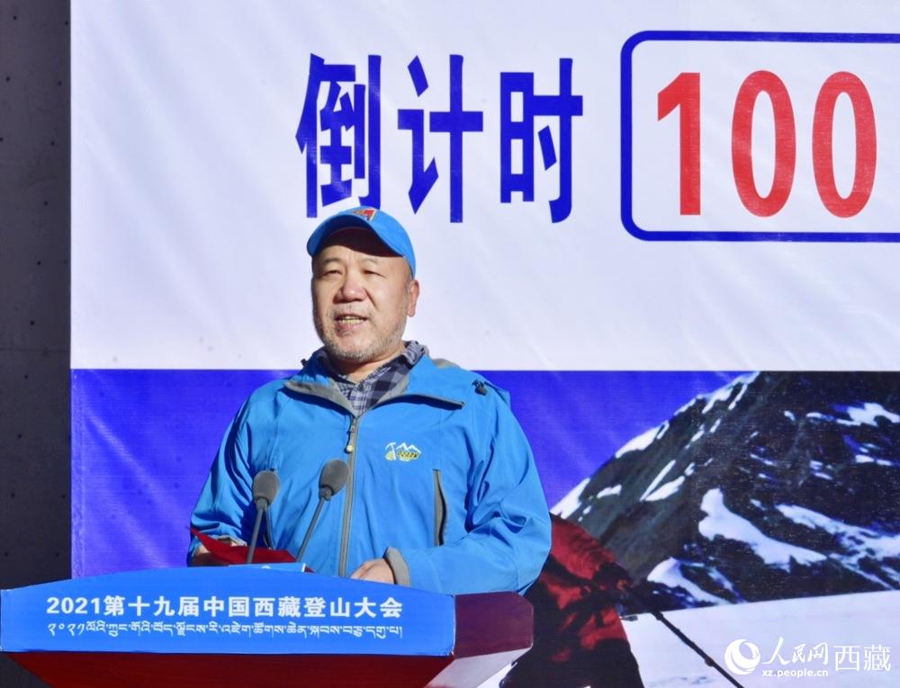 中國登山隊隊長王勇峰致辭。 人民網(wǎng) 李海霞攝