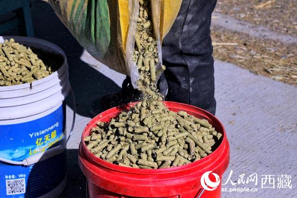 生產(chǎn)出來(lái)的顆粒飼草。人民網(wǎng) 李海霞攝