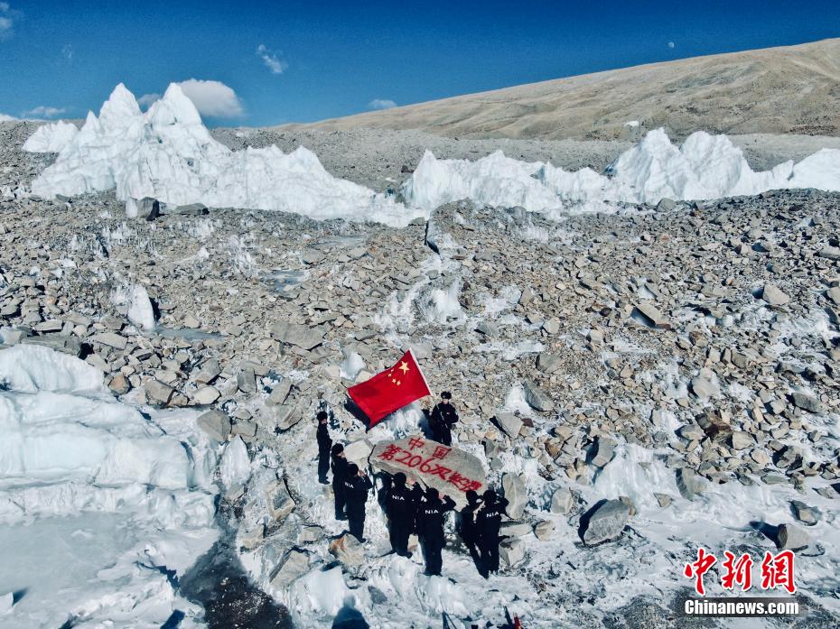 圖為普瑪江塘邊境派出所移民管理警察在邊境冰川開展巡邏。 徐道超 攝
