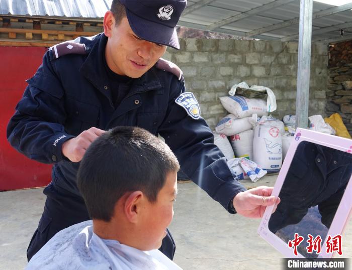 金東邊境派出所民警為轄區(qū)內的小朋友理發(fā)。冉文娟 攝