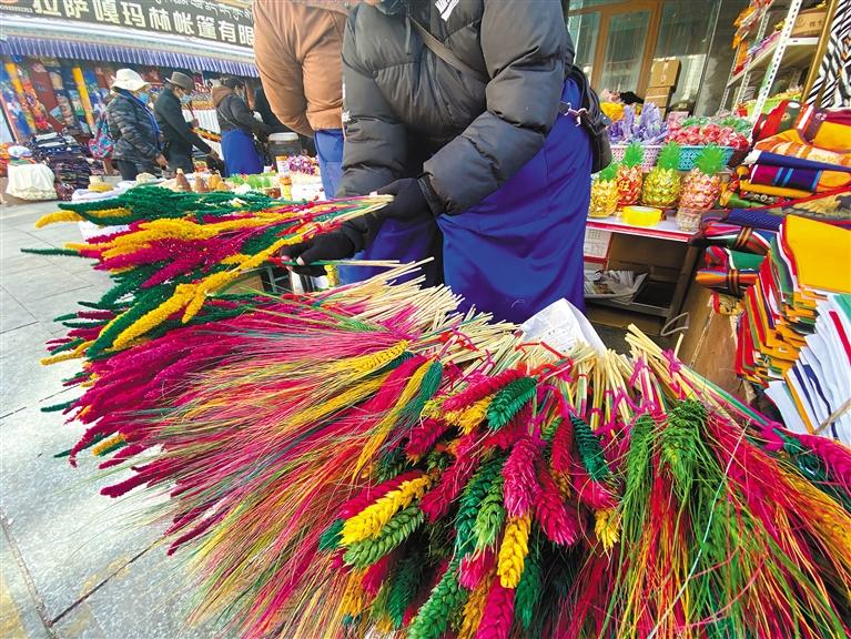 “馬上就要過(guò)藏歷新年了,今天我過(guò)來(lái)買熬制‘古突’的一些必備的東西,還要買新的門簾。最近這段日子,我?guī)缀趺刻於荚谫I年貨?!笔忻窀卢敻嬖V記者。