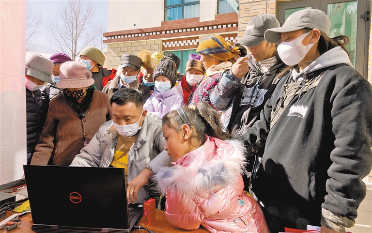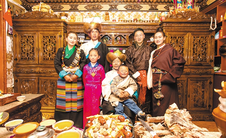 “來,大家看這里!”“咔嚓”一聲,相機(jī)定格了鏡頭前旦巴一家四口的笑容。在藏歷新年來臨之際,墨竹工卡縣甲瑪鄉(xiāng)赤康村村民身穿節(jié)日盛裝,等待著專業(yè)攝影師免費(fèi)拍攝、現(xiàn)場(chǎng)打印全家福照片,留住與家人歡聚一堂的溫馨時(shí)刻。