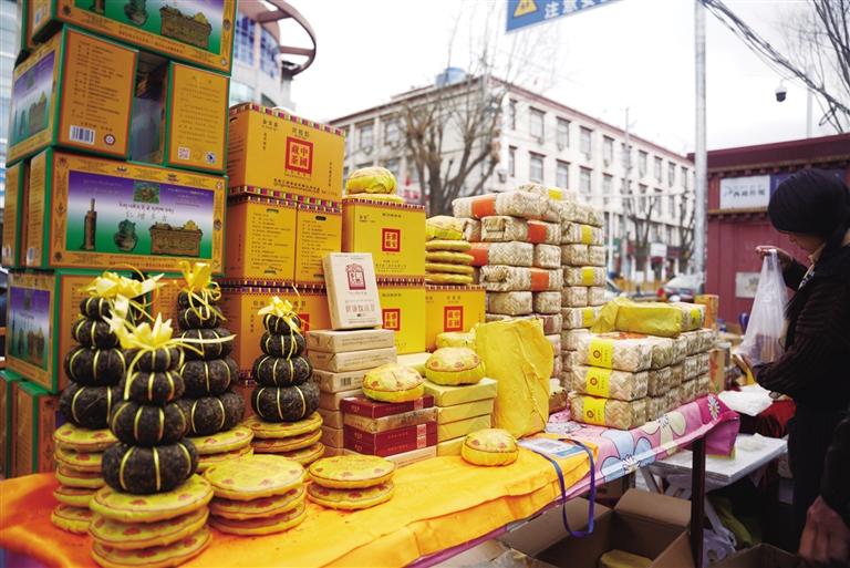 千門萬戶曈曈日,總把新桃換舊符。隨著各民族交往交流交融,藏文對聯(lián)也逐漸成為藏歷新年年貨市場中不可缺少的“成員”,寄托了人們對來年美好生活的殷切期盼。走進(jìn)沖賽康市場,記者看到很多攤位都擺放著各式各樣紅色藏式對聯(lián),內(nèi)容主要蘊含平安、健康、長壽等吉祥的寓意,不時還有市民前來詢價選購。此外,每年藏歷新年前,不少書法家還會將滿載祝福的對聯(lián)寫好后送給市民,把濃濃的年味和對藏歷新年的祝福送到大家手中。