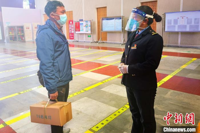 圖為羅布在林芝火車站引導乘客。國鐵青藏集團有限公司 供圖