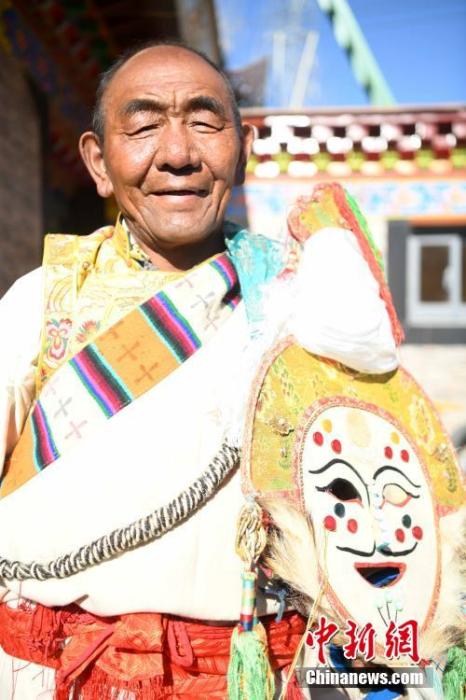 圖為3月21日,協(xié)榮“仲孜”國(guó)家級(jí)非物質(zhì)文化遺產(chǎn)傳承人桑珠。 中新社記者 貢嘎來(lái)松 攝