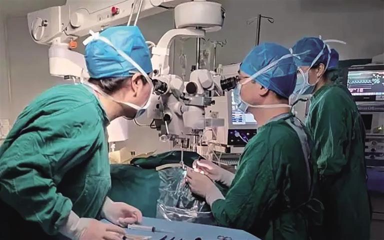 這場(chǎng)手術(shù)的患者旦增(化名)是一名在校中學(xué)生,右眼突然感覺(jué)黑影遮擋4天。3月23日,父母焦急地帶著旦增來(lái)到醫(yī)院眼科門(mén)診,“醫(yī)生,請(qǐng)幫幫我的孩子吧,他連視力表第一行都看不見(jiàn),急死我了!”患者母親焦急地懇求著。