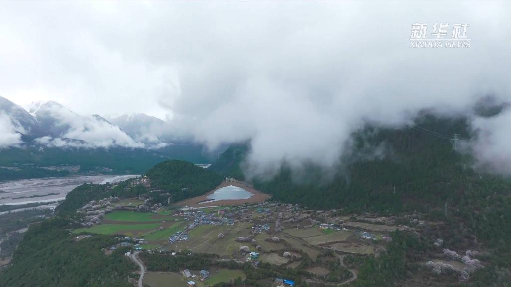 西藏林芝市波密縣擁有青藏高原最大的冰川聚集地。每年春天,桃花盛開(kāi),宛如一片片粉色祥云縈繞著村莊。