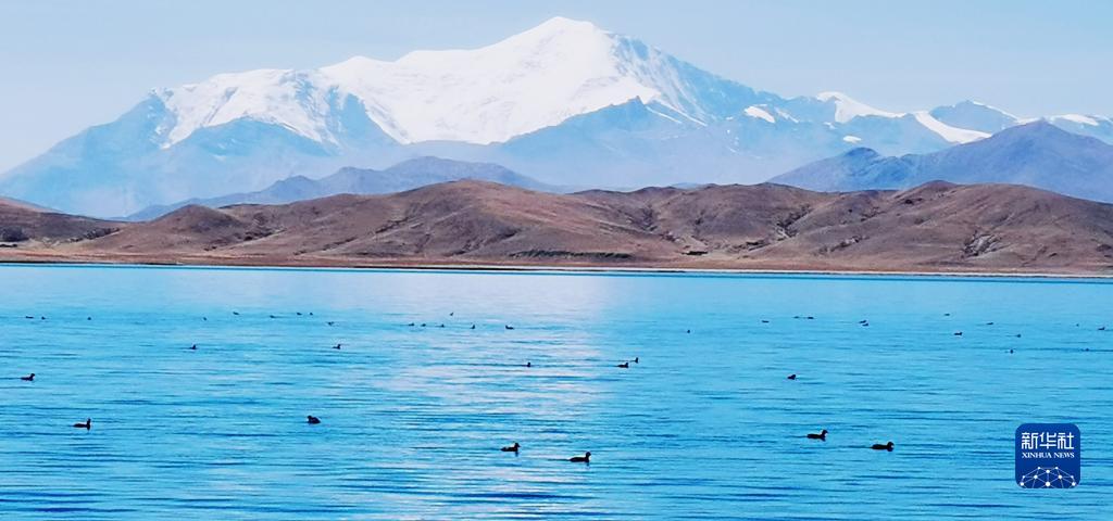 這是在特布拉村拍攝到的羊卓雍錯湖上的鳥群。新華社記者 沈虹冰 攝(手機(jī)照片,3月19日攝)