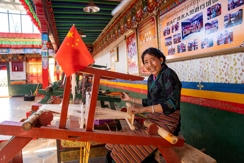村民在織卡墊。上海援藏聯(lián)絡組供圖