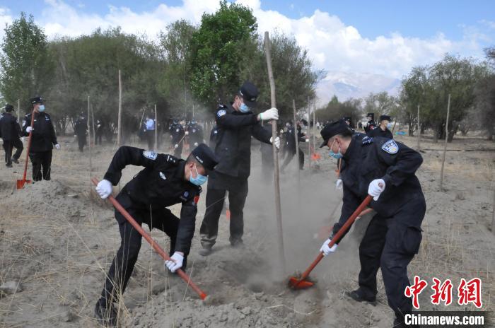 圖為西藏邊檢總站輪訓(xùn)大隊民警植樹活動現(xiàn)場 。西藏邊檢總站輪訓(xùn)大隊供圖