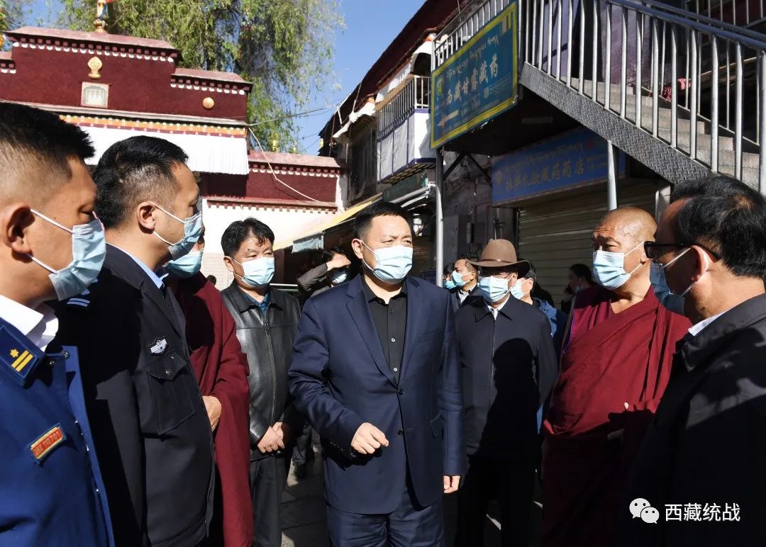 在小昭寺、色拉寺,嘎瑪澤登指出,當(dāng)前國際疫情仍在泛濫,國內(nèi)疫情防控形勢異常嚴(yán)峻,西藏外防輸入的壓力陡增,寺廟作為西藏防疫的重點部位,必須采取嚴(yán)格的防控措施。嘎瑪澤登在寺廟入口處察看測溫掃碼,并實地檢查各項防疫措施落實情況,詳細(xì)了解僧人疫苗接種、核酸篩查等工作開展情況。在色拉寺管委會,嘎瑪澤登座談聽取拉薩市宗教領(lǐng)域和色拉寺疫情防控情況匯報,指出拉薩是全區(qū)首善之地,在疫情防控方面首當(dāng)其沖,宗教領(lǐng)域是疫情防控的重點領(lǐng)域,萬不可疏忽大意。嘎瑪澤登強(qiáng)調(diào),要進(jìn)一步提高思想認(rèn)識,壓實防控責(zé)任,落實落細(xì)防控措施,抓緊抓實防控工作,針對存在問題漏洞,狠抓整改強(qiáng)化措施,堅決守住宗教領(lǐng)域不發(fā)生疫情底線。