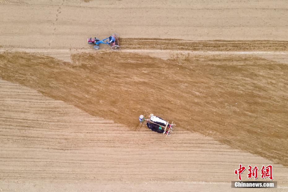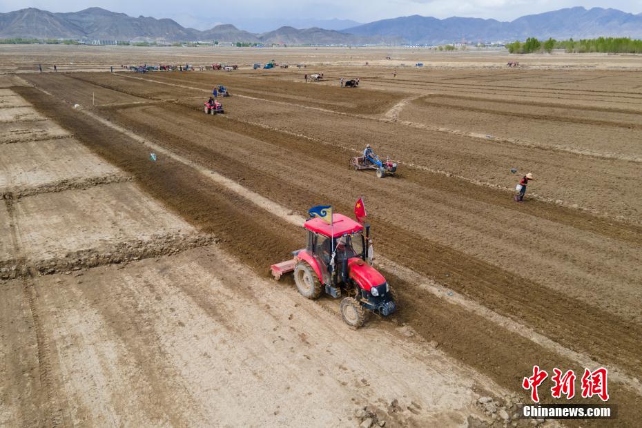 “五一”國際勞動節(jié)期間,平均海拔超過3800米的西藏自治區(qū)日喀則桑珠孜區(qū)田間一派農忙景象,當地農牧民正忙于春耕,播種小麥。據當地農牧民介紹,他們春耕翻耕土地一般使用拖拉機,而播撒小麥后,覆蓋土層則使用高原傳統的“二牛抬杠”,機械化和傳統耕作方式相互配合,共同完成春耕作業(yè)。