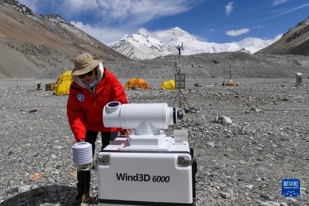 5月3日,在珠峰登山大本營,科研人員檢查微波輻射計(jì)。新華社記者 姜帆 攝