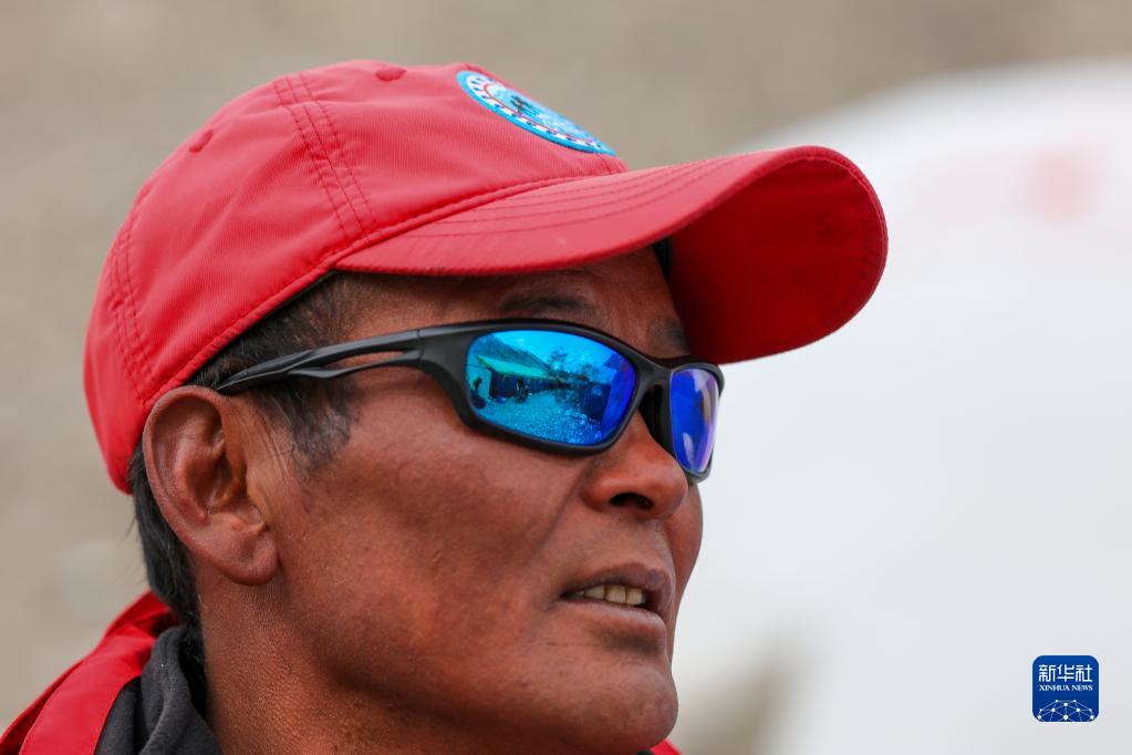 安全返回大本營的珠峰科考登頂工作小組副組長扎西平措,這是他第16次成功登頂珠峰(5月5日攝)。新華社記者 姜帆 攝