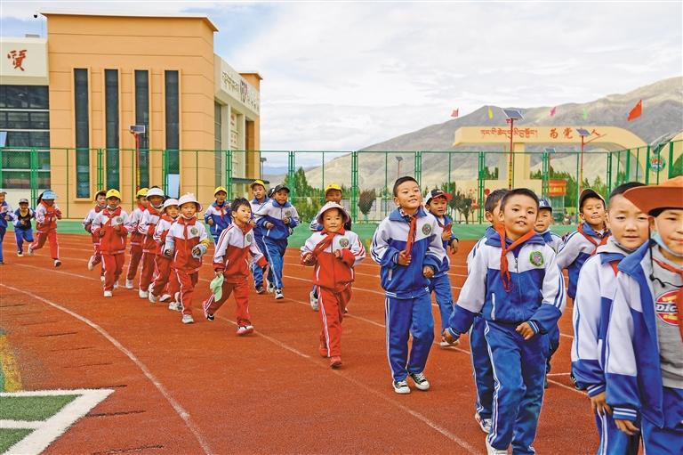 圖為山南市瓊結(jié)縣瓊結(jié)鎮(zhèn)完全小學(xué)學(xué)生在上體育課。記者 李洲 攝