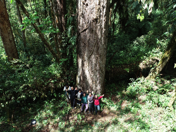 圖為測量團隊成員與大樹合照。(受訪者供圖)