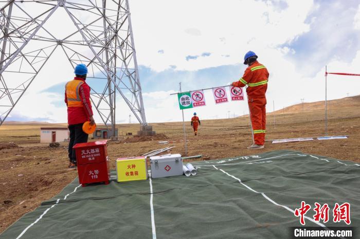 青藏聯(lián)網(wǎng)工程年檢工作人員正在進行走線?!¢Z昱翰 攝