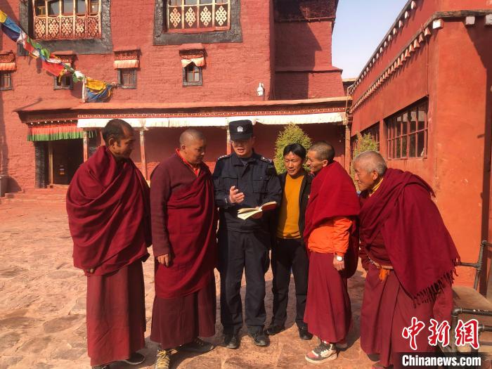 圖為楊聰向轄區(qū)僧尼宣講最新的政策。 科加派出所供圖
